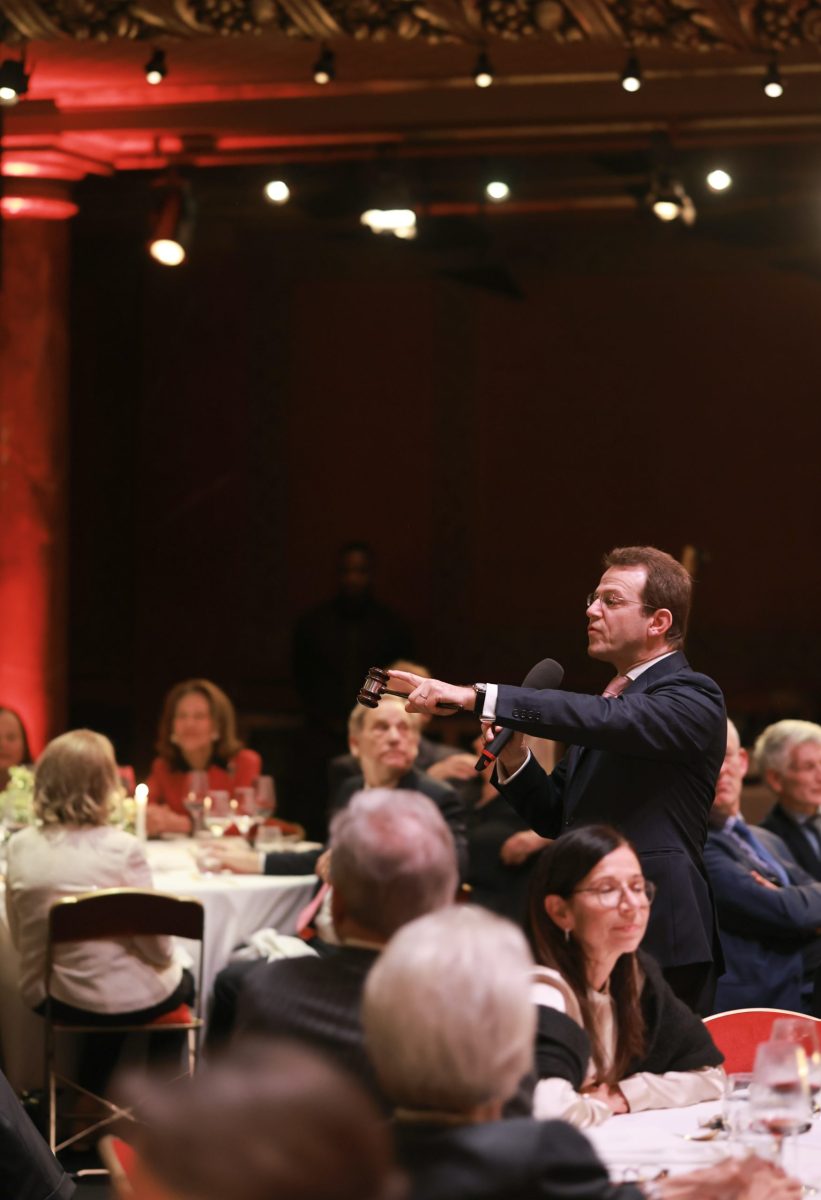 C’est avec maestria que les Amis de l’OSR ont célébré les 90 ans de l’association le 9 décembre 2025 au Victoria Hall. Un dîner de gala inoubliable s’est tenu sur la scène même du Victoria Hall – une première en 130 ans – et une vente aux enchères unique, conduite par la maison Piguet, a été organisée pour financier un violon Storioni d’exception pour le premier violon solo de l’OSR. Nous tenons à adresser nos plus sincères remerciements à tous les généreux donateurs. Grâce à leur soutien inébranlable, cette initiative a connu un grand succès, et nous sommes fiers de cette première pour les Amis de l’OSR.